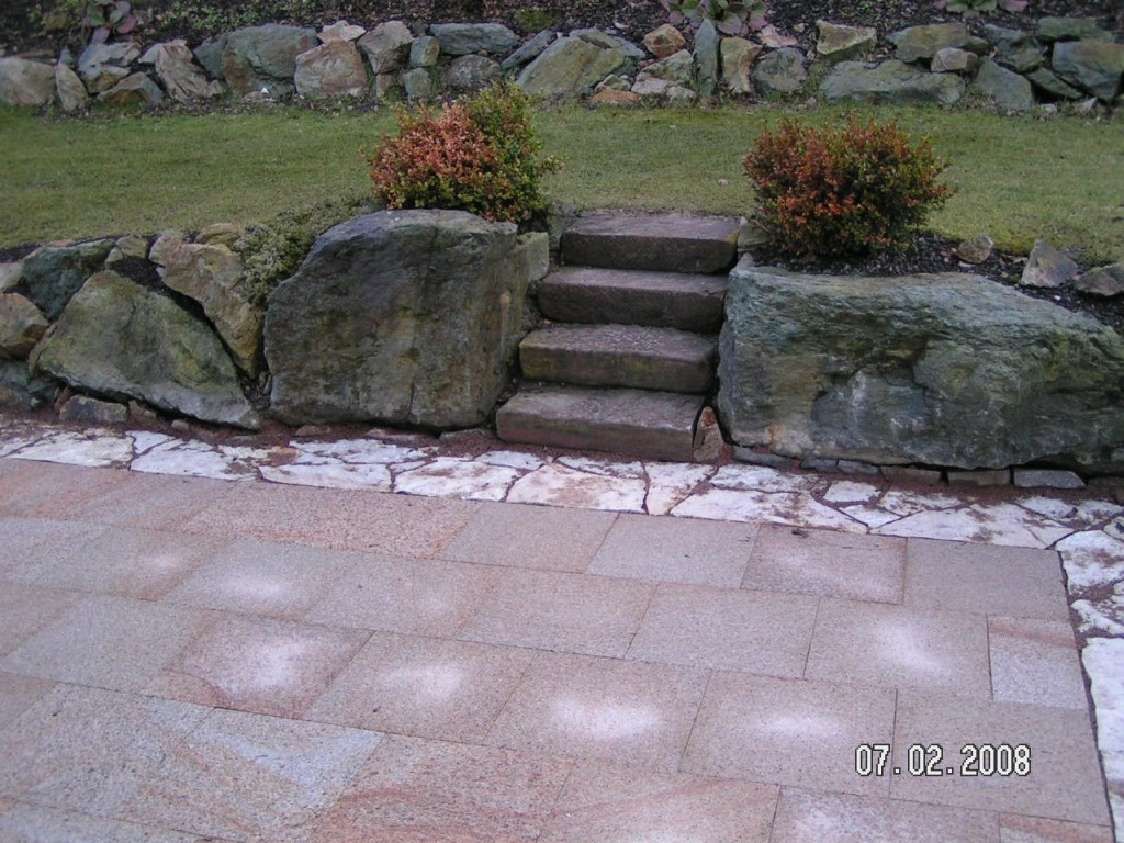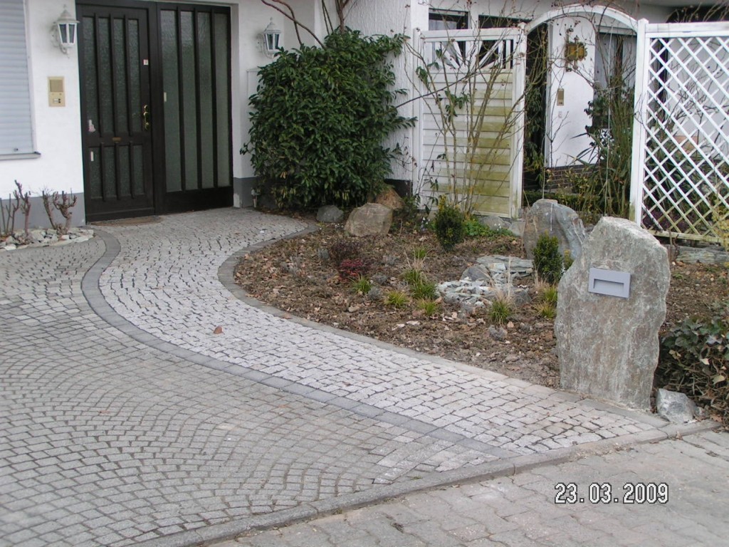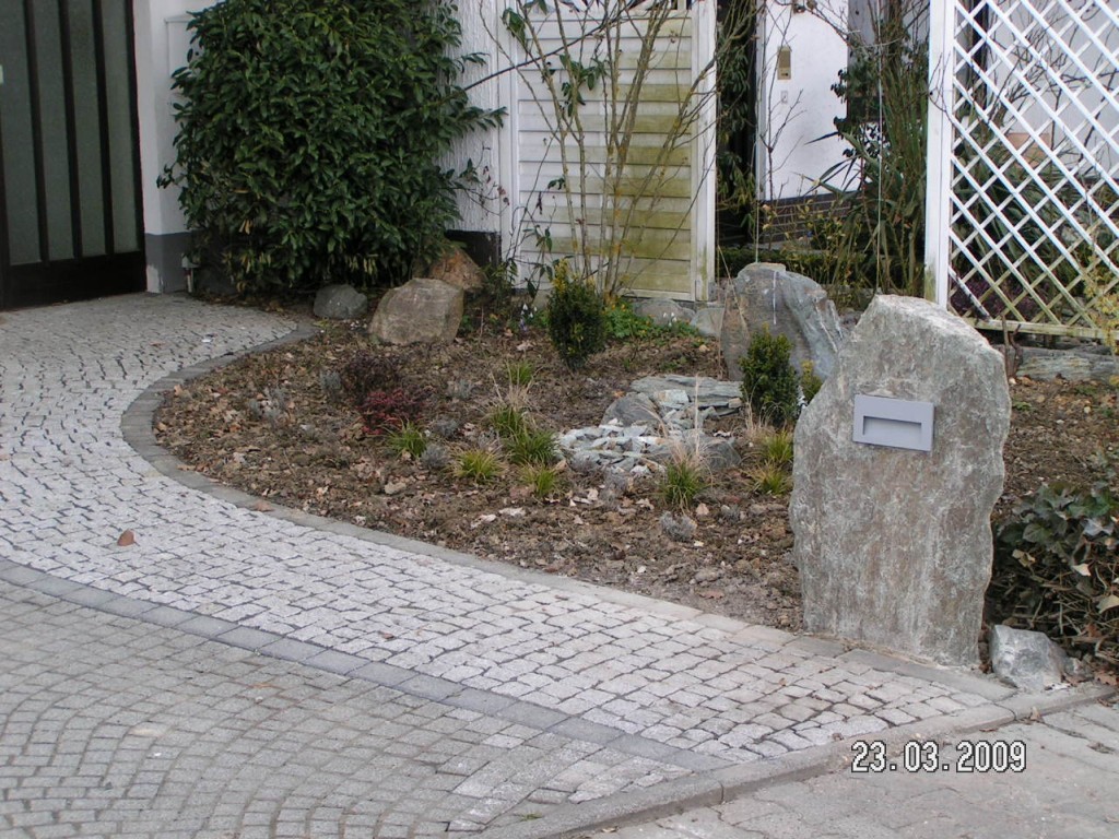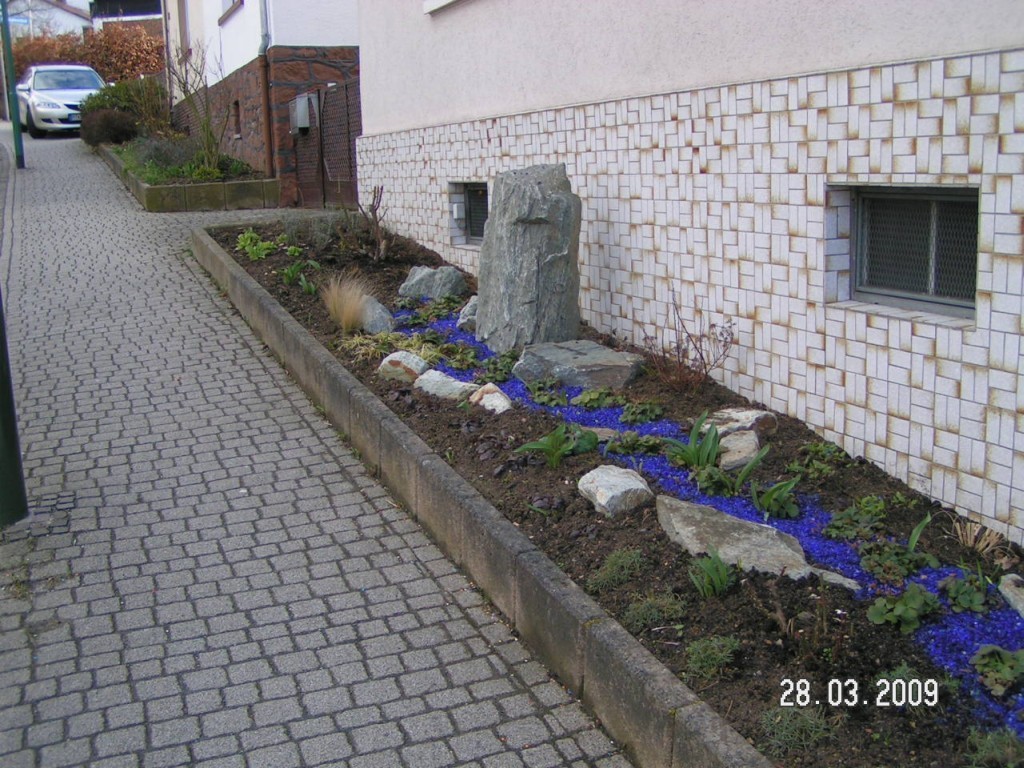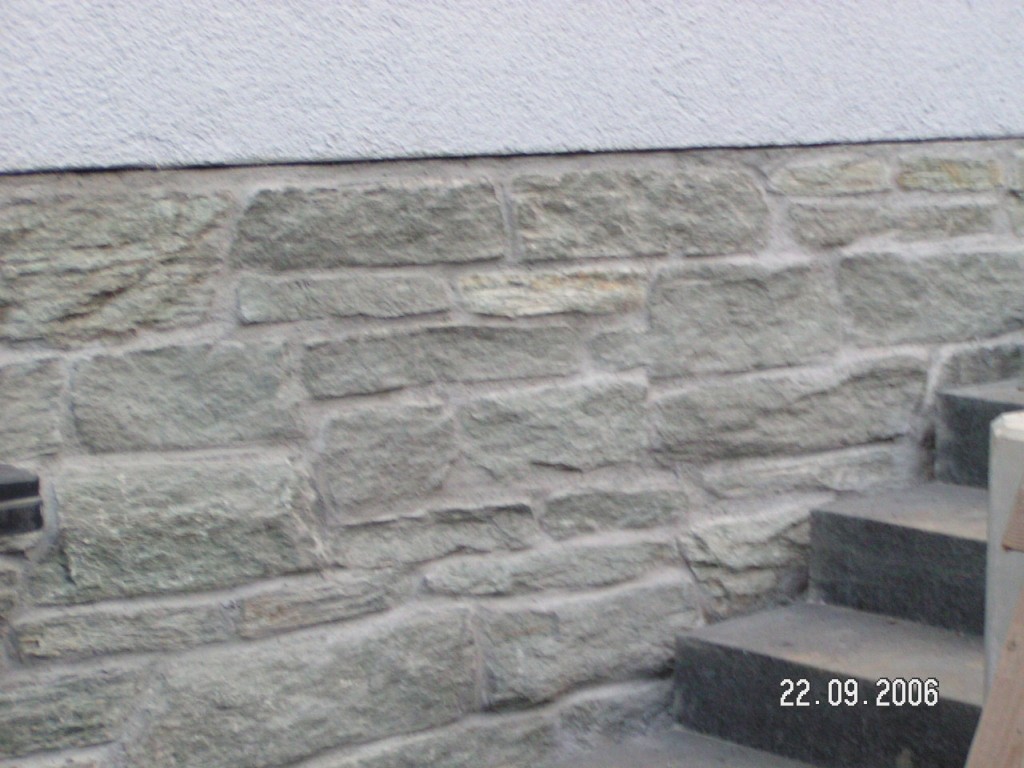 Sockelverkleidung aus heimischem Material - Gneis aus dem Taunus. |